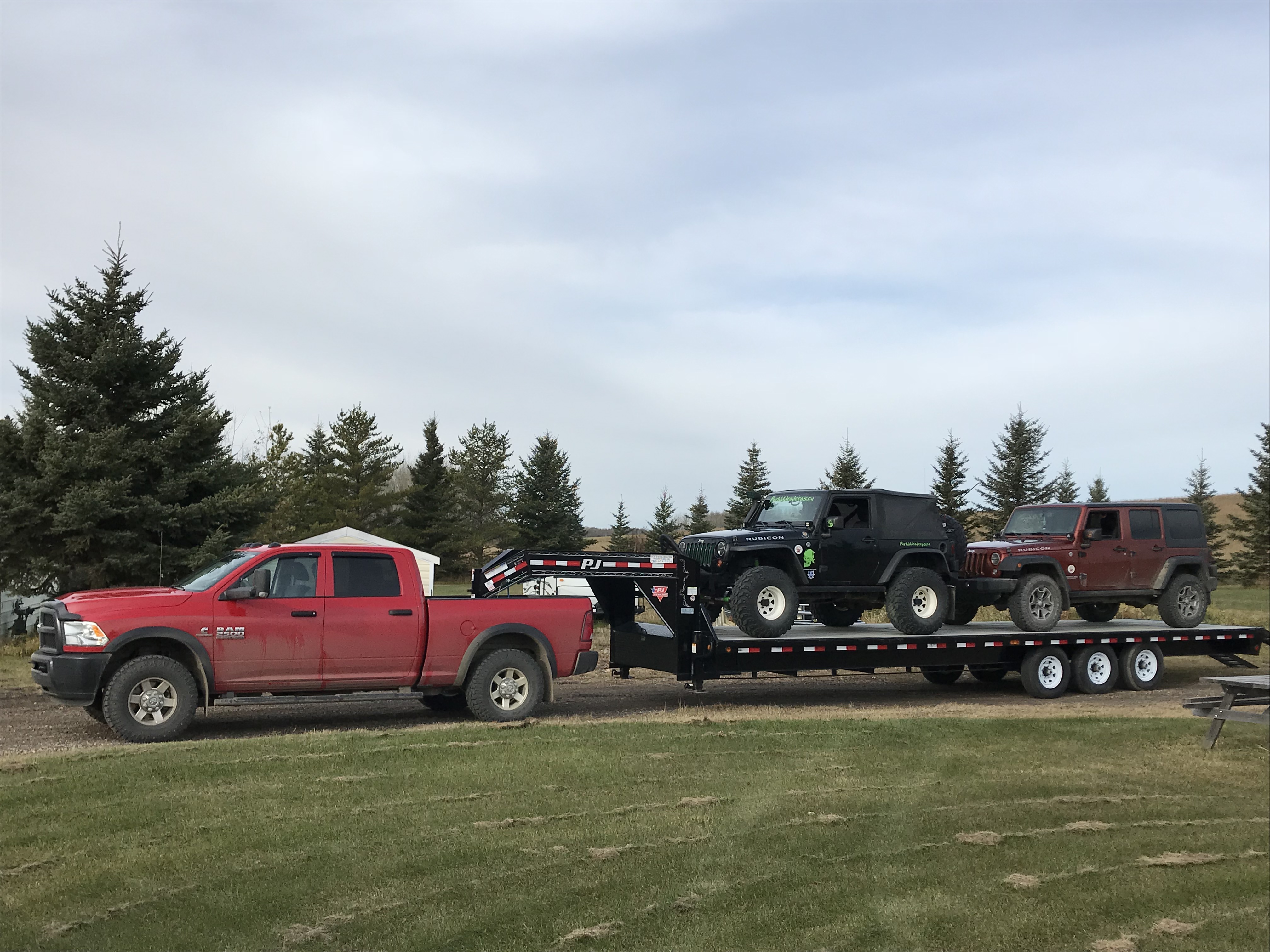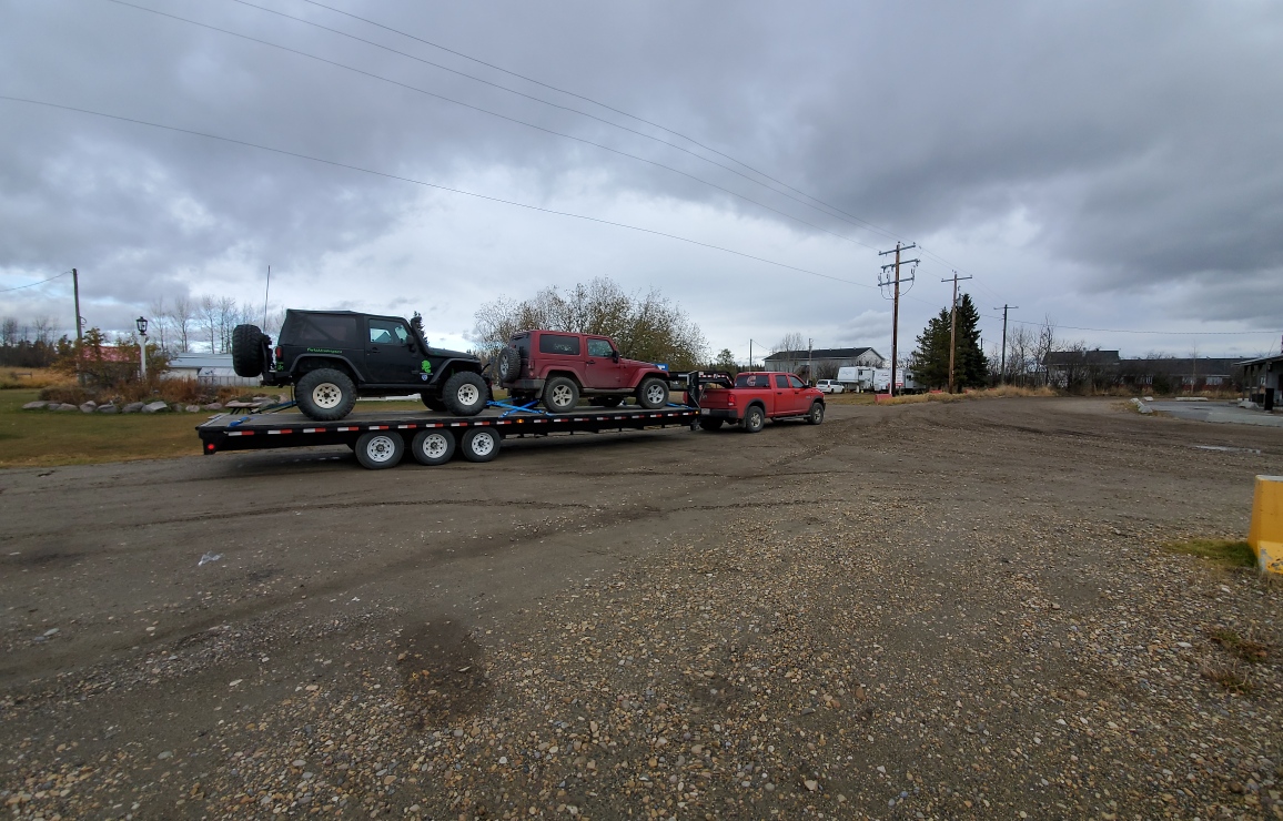 William bought this unit mid October 2019 to haul bales and for hauling their toys! His and Hers Jeeps. Here they are with both loaded and ready to go.