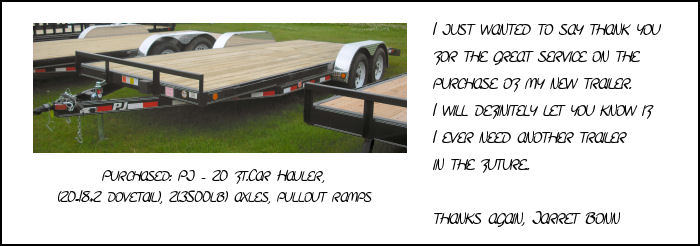 Sold this Pj utility trailer to a great return customer . XTO ENERGY CANADA(Whitecourt), thank you for your return business.